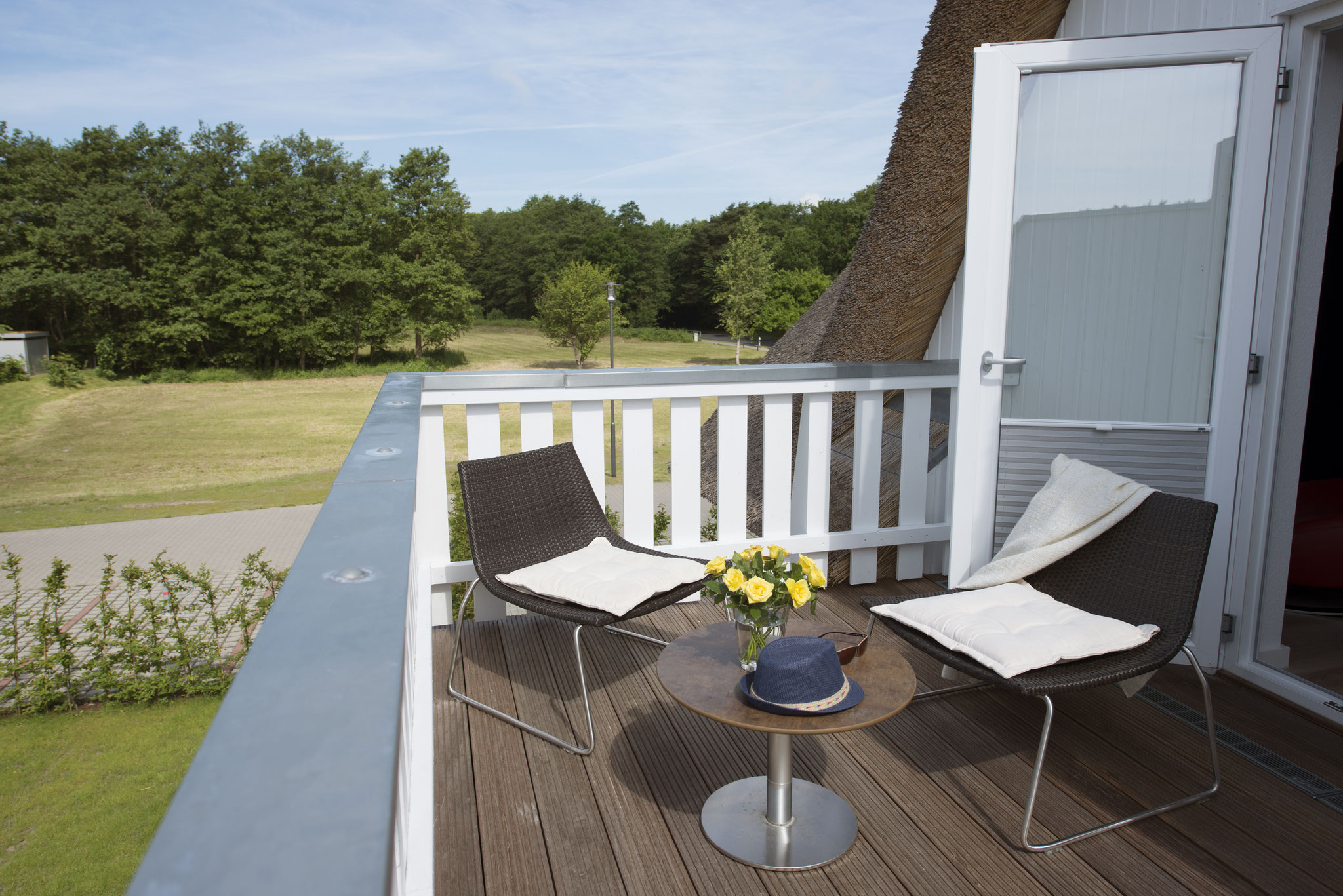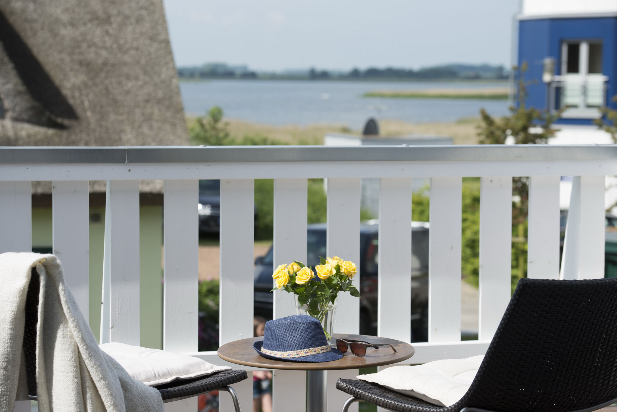 Wenige Gehminuten vom kilometerlangen Sandstrand entfernt, mit Blick auf den Bodden, befindet sich unser reetgedecktes Ferienhaus Vermeer. Die ruhige Lage und die hochwertige Ausstattung bieten alles für einen gelungenen Urlaub für bis zu 6 Personen.